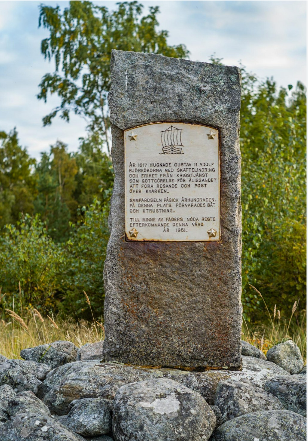 Det här monumentet restes vid Bodback i Björköby 1951 som minne över de Björköbor som fört resande och post över Kvarken.